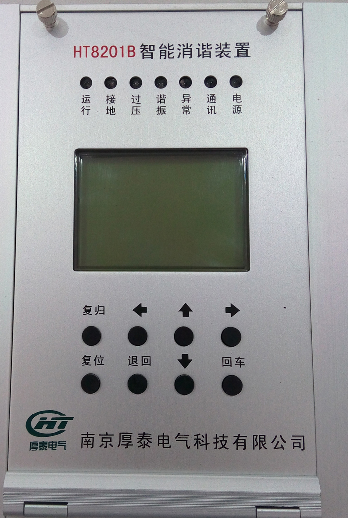 HT8102系列智能消諧裝置是我公司針對(duì)電力部門和用戶由于鐵磁諧振而時(shí)常發(fā)生的電壓互感器(PT)燒毀甚至爆炸的惡性事故,在廣泛征求用戶意見(jiàn)的基礎(chǔ)上,新近研制生產(chǎn)的一種智能消諧裝置。它以美國(guó)Atmel公司的精簡(jiǎn)指令集(RISC)單片微控制器ATmega128為采樣運(yùn)算、邏輯判斷和控制中心(CPU),經(jīng)大功率、無(wú)觸點(diǎn)消諧元件為出口,以點(diǎn)陣液晶顯示器(LCD)、信號(hào)指示燈、觸摸按鍵和微型打印機(jī)及RS485現(xiàn)場(chǎng)通訊總線為人機(jī)接口,配以智能化的軟件,組成了技術(shù)和原理先進(jìn)、使用簡(jiǎn)單方便的“傻瓜型”診斷、消諧、記錄裝置。